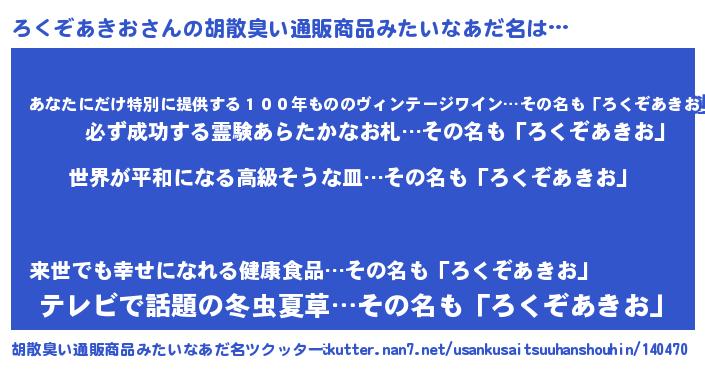 | 欧米人風あだ名 | 『ろくぞあきおクリステル』 |