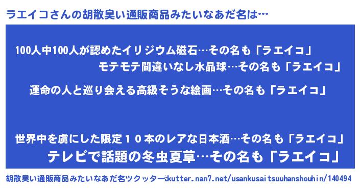 | ヘコむあだ名 | 『酢こんぶ』『ラエふぇ~』 |