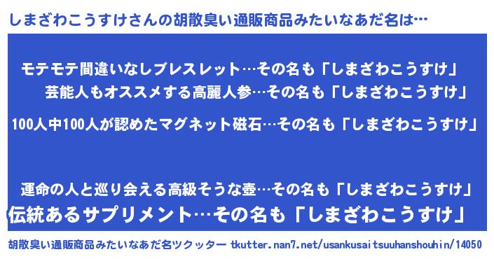 | ヘコむあだ名 | 『しまにー』『しまお』『なまこ酢』 |