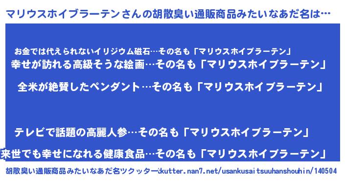 | 女子向けラノベタイトル風あだ名 | 『マリウスホイブラーテン様がみてる』 |