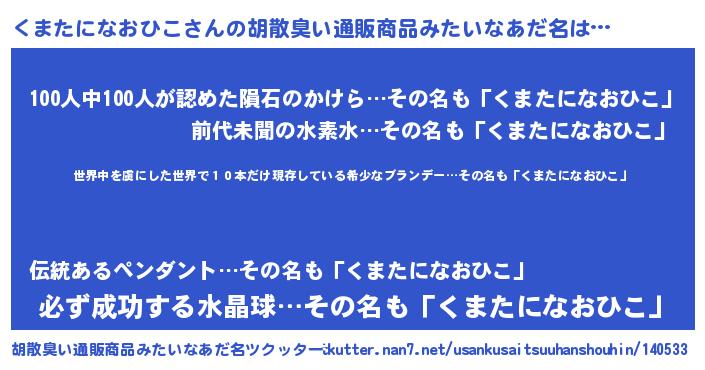 | 意味不明あだ名 | 『住所不定無職くまたになおひこ(79歳)』 |