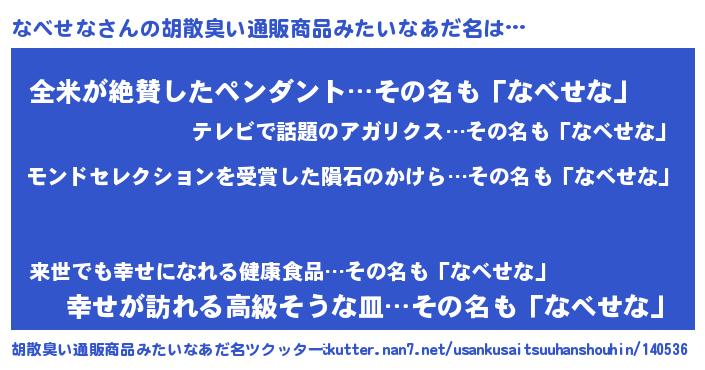 | 意味不明あだ名 | 『つくし科なべせな属』『自称なべせな』 |