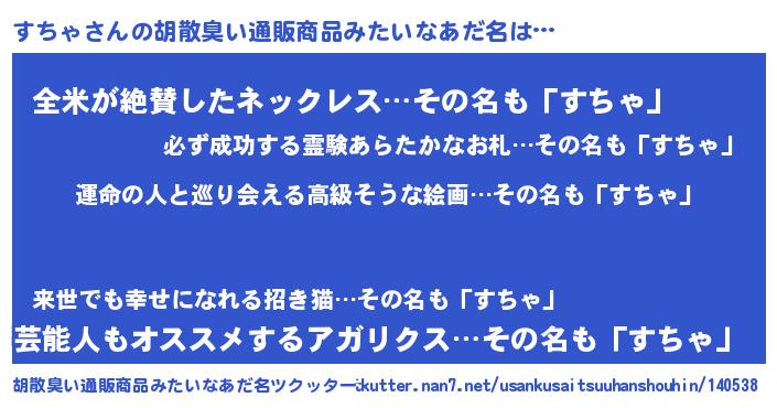 | 意味不明あだ名 | 『すちゃフォーエバー』『自称すちゃ』 |