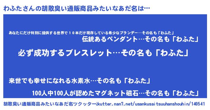 | ヒーロー風カッコイイあだ名 | 『スーパーワフタ』『仮面ワフダー』 |