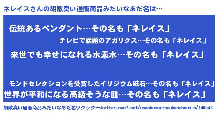 | 意味不明あだ名 | 『永久保存ネレイス』『自称ネレイス』 |