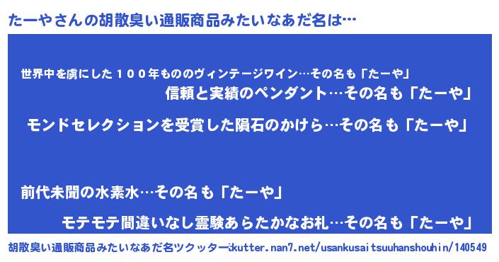 | ヒーロー風カッコイイあだ名 | 『天空の使者たーや』『仮面ターダー』 |