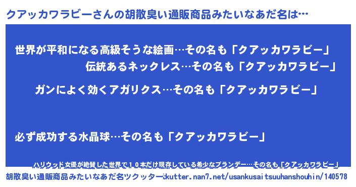 | ヒーロー風カッコイイあだ名 | 『ウルトラ戦士クアッカワラビー』 |