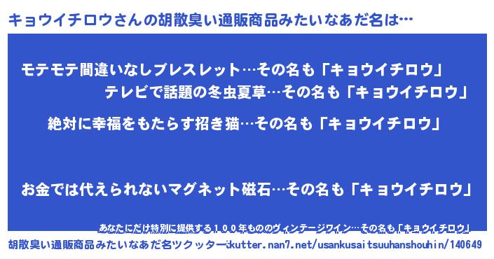| 意味不明あだ名 | 『永久保存キョウイチロウ』 |
