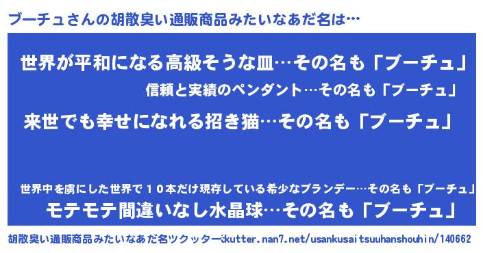 | ヒーロー風カッコイイあだ名 | 『ネオブーチュ』『ウルトラブーチュマン』 |