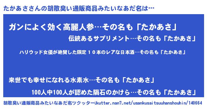 たかあささんの胡散臭い通販商品みたいなあだ名をツクッター!
