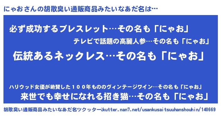 | 意味不明あだ名 | 『とにかく怪しいにゃお』『自称にゃお』 |