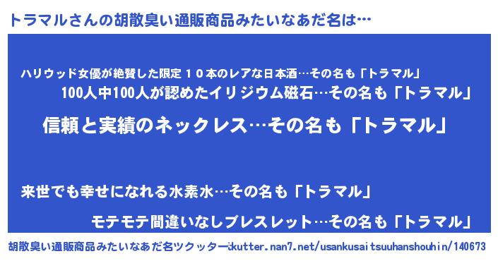 | 欧米人風あだ名 | 『ウサイントラマル』『マイケルトラマル』 |