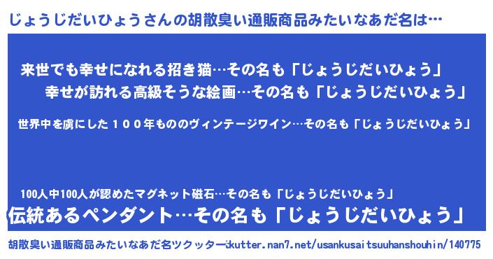 | 意味不明あだ名 | 『住所不定無職じょうじだいひょう(9歳)』 |