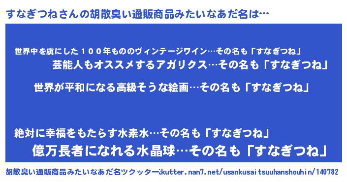 | 男性向けラノベタイトル風あだ名 | 『転生したらすなぎつねだった件』 |