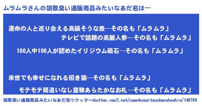 | ポケモン風あだ名 | 『ムックウザ』『ムラムダネ』 |
