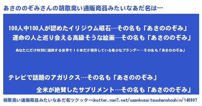 | ヘコむあだ名 | 『あさぷりん』『牛乳』『あさもー』 |