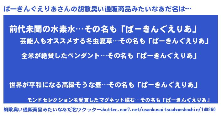 | 男性向けラノベタイトル風あだ名 | 『ぱーきんぐえりあの嫁は女の子じゃないと思った?』 |