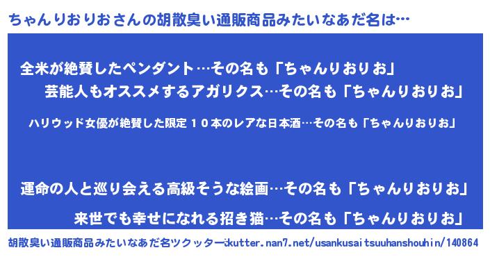 | 意味不明あだ名 | 『住所不定無職ちゃんりおりお(47歳)』 |