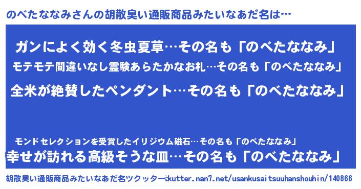 | 意味不明あだ名 | 『とにかく怪しいのべたななみ』 |