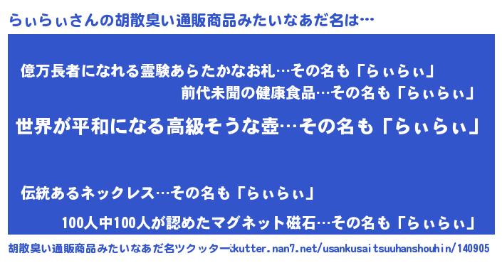 | ヘコむあだ名 | 『豆乳』『らぃっふぃ~』『らぃお』 |