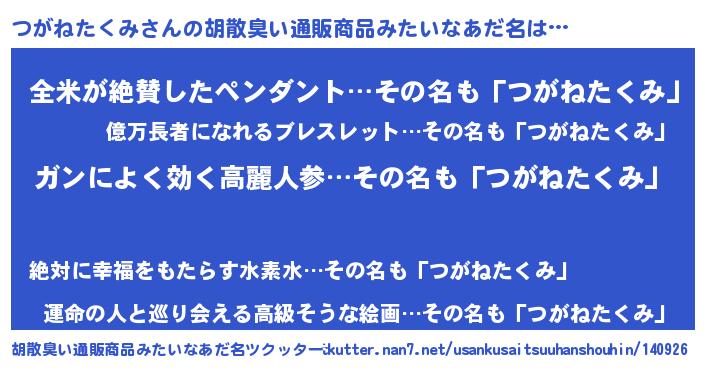 | 伝説のあだ名 | 『孤高の魔法使いつがねたくみ』 |