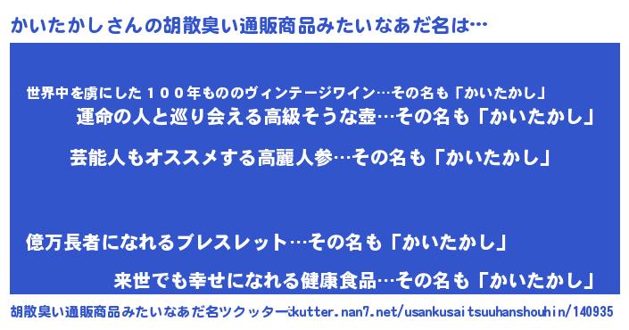 | 恥ずかしいあだ名 | 『カイタカシデラックス』『かいちん』 |