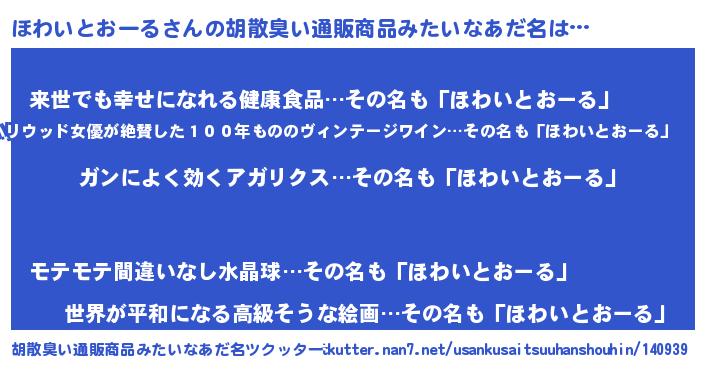 | 意味不明あだ名 | 『自称ほわいとおーる』 |