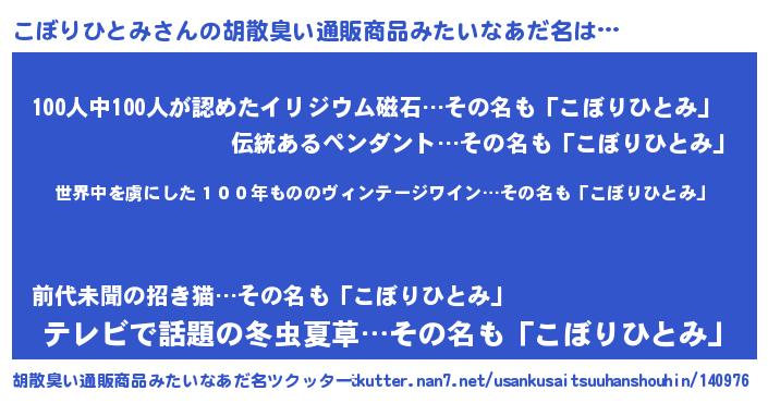 | ヘコむあだ名 | 『こぼを』『こぼりひとみ(笑)』 |