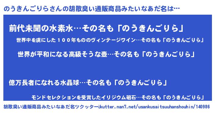 | ヘコむあだ名 | 『なまこ酢』『のうきんごりら(震え声)』 |