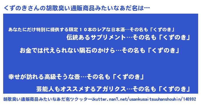 | ヒーロー風カッコイイあだ名 | 『慈愛の使者くずのき』『仮面クズダー』 |