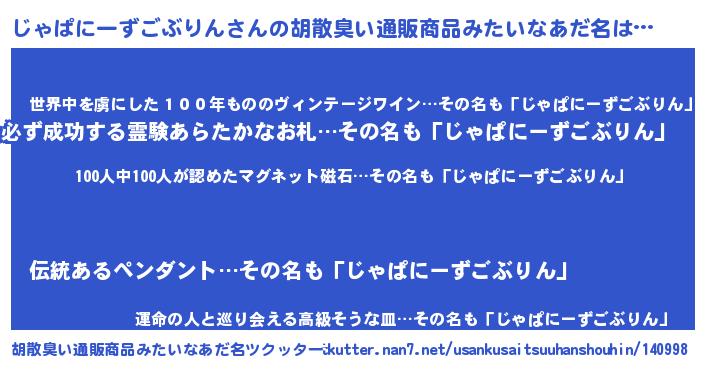 | ヒーロー風カッコイイあだ名 | 『友情の使者じゃぱにーずごぶりん』 |