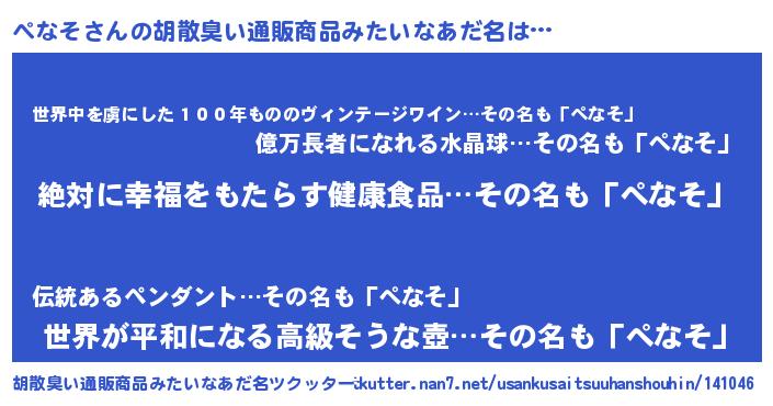| 意味不明あだ名 | 『永久保存ぺなそ』『なめこ科ぺなそ属』 |