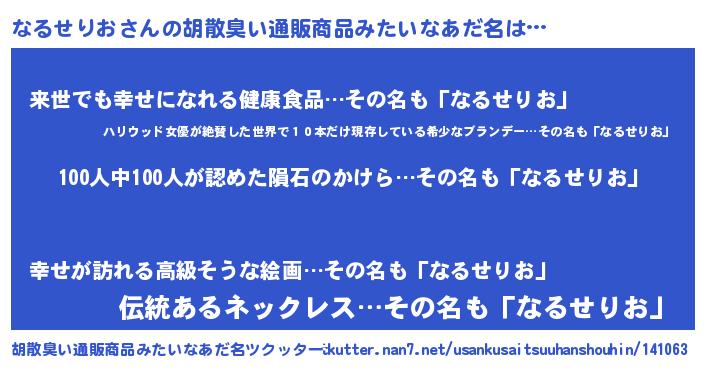 | ヘコむあだ名 | 『なるせりお(苦笑)』『なるっ子』 |