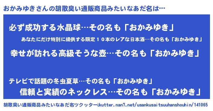 | 意味不明あだ名 | 『めかぶ科おかみゆき属』 |