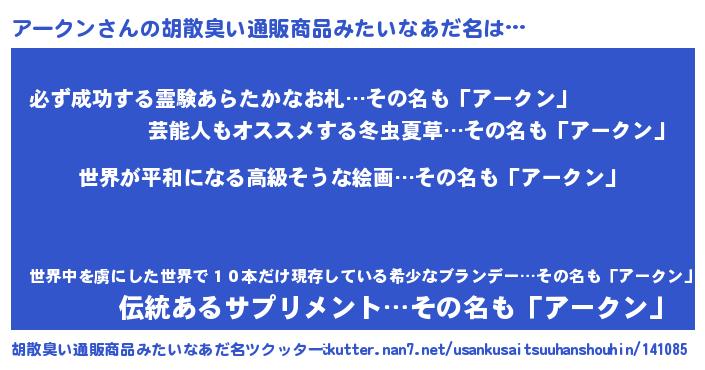 | 意味不明あだ名 | 『アークンフォーエバー』『自称アークン』 |