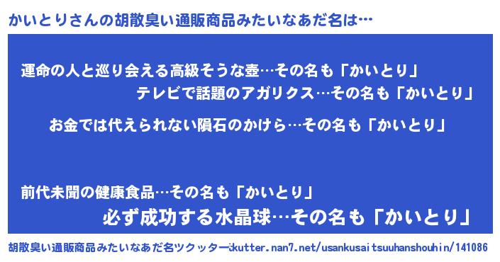 | ヘコむあだ名 | 『豆乳』『かいもー』『かいとり(爆)』 |