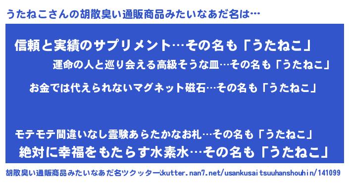 | 欧米人風あだ名 | 『ダニエルうたねこ』『ウサインうたねこ』 |