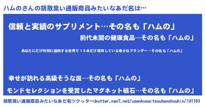 | ヘコむあだ名 | 『ハムっぺ』『ハムの(笑)』 |