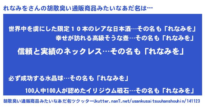 | 料理風あだ名 | 『れなみをごはん』『れなみをのトマト煮』 |