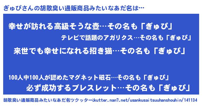 | 男性向けラノベタイトル風あだ名 | 『転生したらぎゅぴだった件』 |