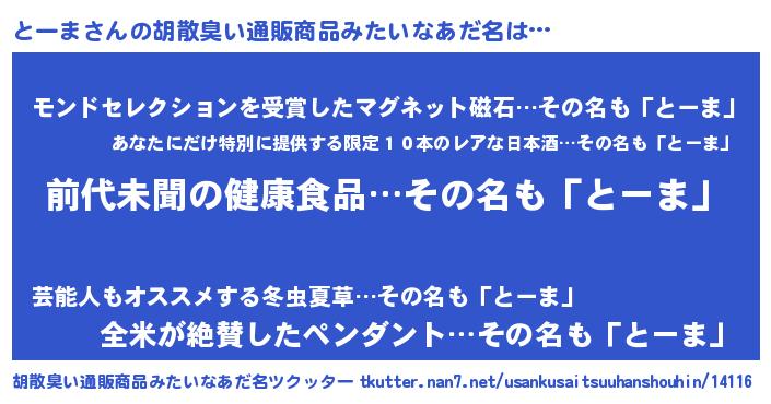 | ヘコむあだ名 | 『とーま(笑)』『とーお』『とーもー』 |