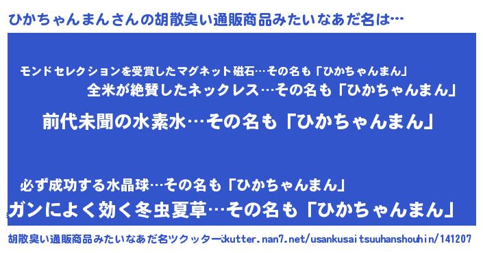 | 伝説のあだ名 | 『古文書に記された勇者ひかちゃんまん』 |