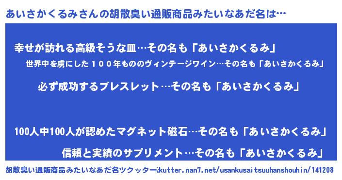 | ヘコむあだ名 | 『あいにー』『つくし』『あいお』 |