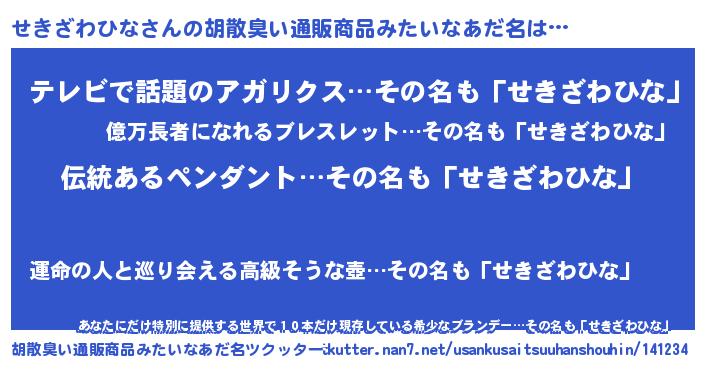 | 肩書あだ名 | 『せきざわひなプロデューサー』 |
