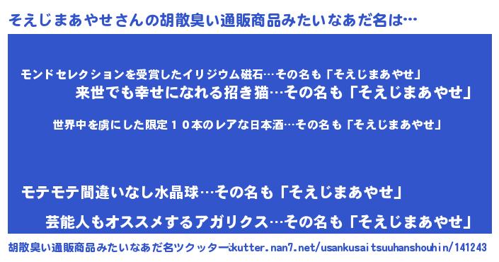 | ヒーロー風カッコイイあだ名 | 『仮面ソエダー』『ネオソエジマアヤセ』 |
