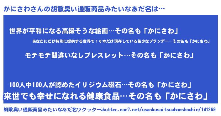 | 意味不明あだ名 | 『ペロリンかにさわ』『永久保存かにさわ』 |
