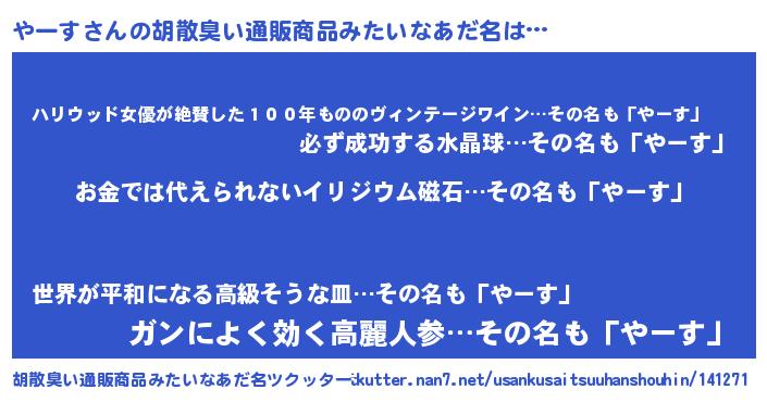 | ヒーロー風カッコイイあだ名 | 『慈愛の使者やーす』『仮面ヤーダー』 |