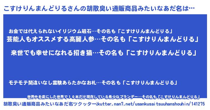 | ヘコむあだ名 | 『こすけりんまんどりる(笑)』『こすにゅー』 |