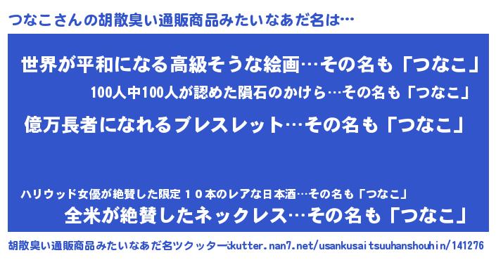 | 欧米人風あだ名 | 『マイケルつなこ』『つなこクリステル』 |