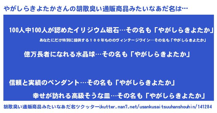 | 肩書あだ名 | 『やがしらきよたか店長』 |